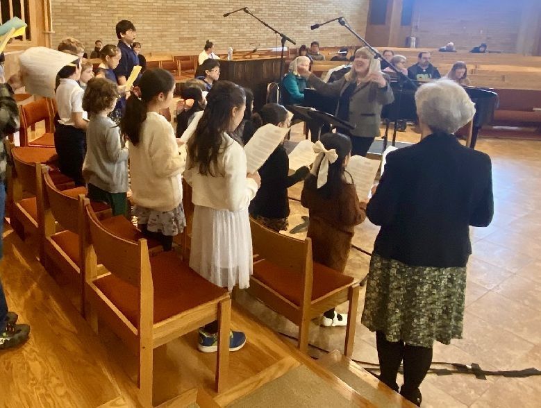 Students in kindergarten through fifth grade make up our wonderful Children's Choir. They sing at the 11:00 am Mass on the last Sunday of the month, October through May, on Christmas Eve, and other special liturgies throughout the year. Rehearsals are held during Catapult Religious Education classes on the Wednesday afternoon prior to the date they sing, and at 10:00 am on the mornings they sing. Song sheets and recordings are sent via email to families so that children can rehearse at home, whether or not they attend the in-person rehearsals.